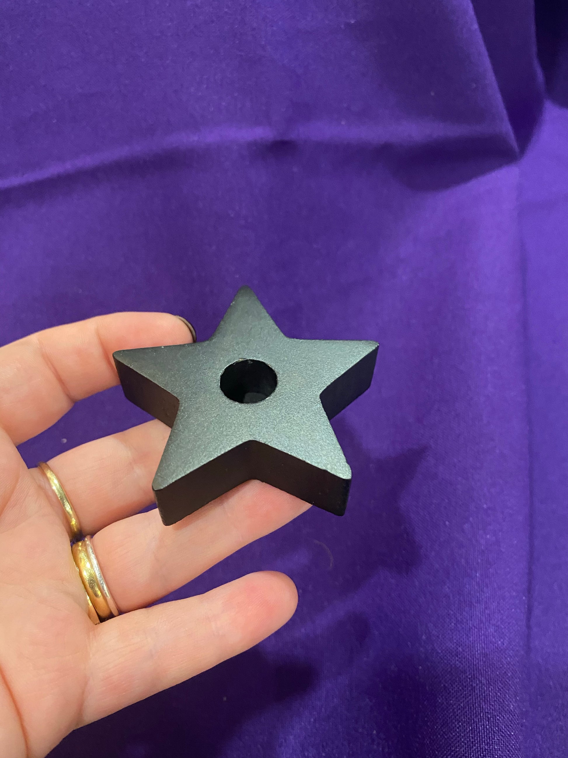 Small Black Star Spell Candle Holder. Made from MDF and the perfect size for holding spell candles.